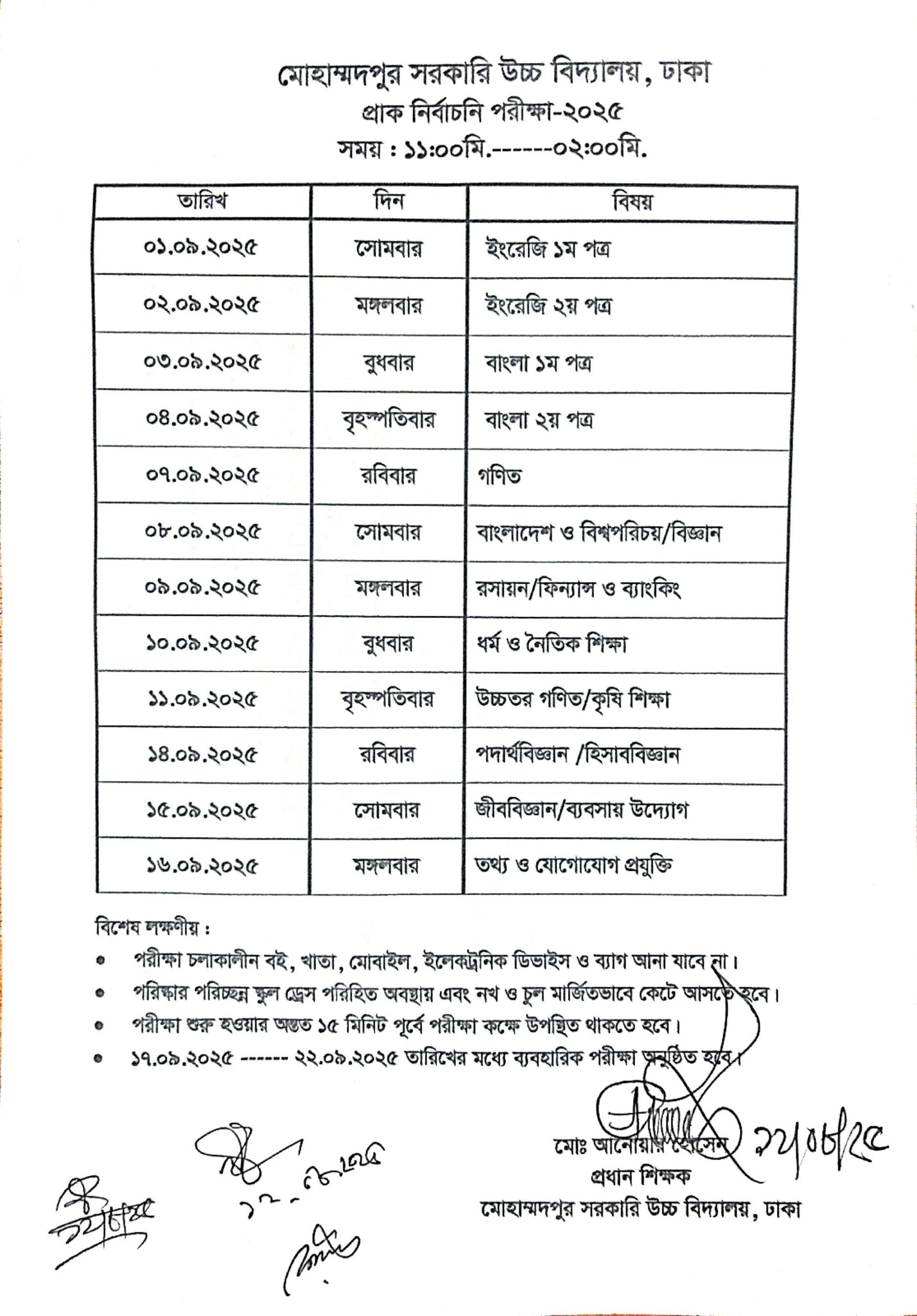 প্রাক নির্বাচনি পরীক্ষা-২০২৫ এর সময়সূচি