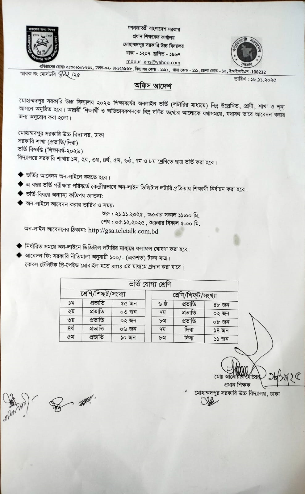 ভর্তি বিজ্ঞপ্তি( শিক্ষাবর্ষ - ২০২৬)